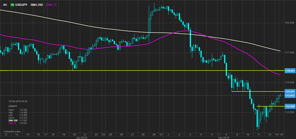 Линии фронта в паре USDJPY для трейдеров вполне очевидны после падения пары более чем на 1000 пунктов относительно движения на фоне известия о введении Банком Японии отрицательных ставок от 29 января. На предыдущей сессии была попытка преодолеть локальное сопротивление чуть выше 114,00, при этом психологически значимый уровень проходит на 115,00, а ключевое сопротивление — на 116,00 за счет сформированной ранее модели «голова и плечи».