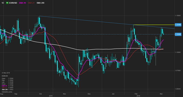 EUR/USD вырос после того, как ЕЦБ намекнул на то, что ставки дальше снижаться не будут (или, по крайней мере, на то, что -0,50% — это нижний предел), а Федрезерв на прошлой неделе подлил масла в огонь своим нерешительным заявлением.