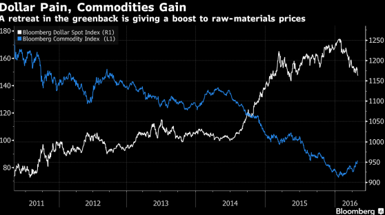 Динамика доллара США и товарного индекса Bloomberg