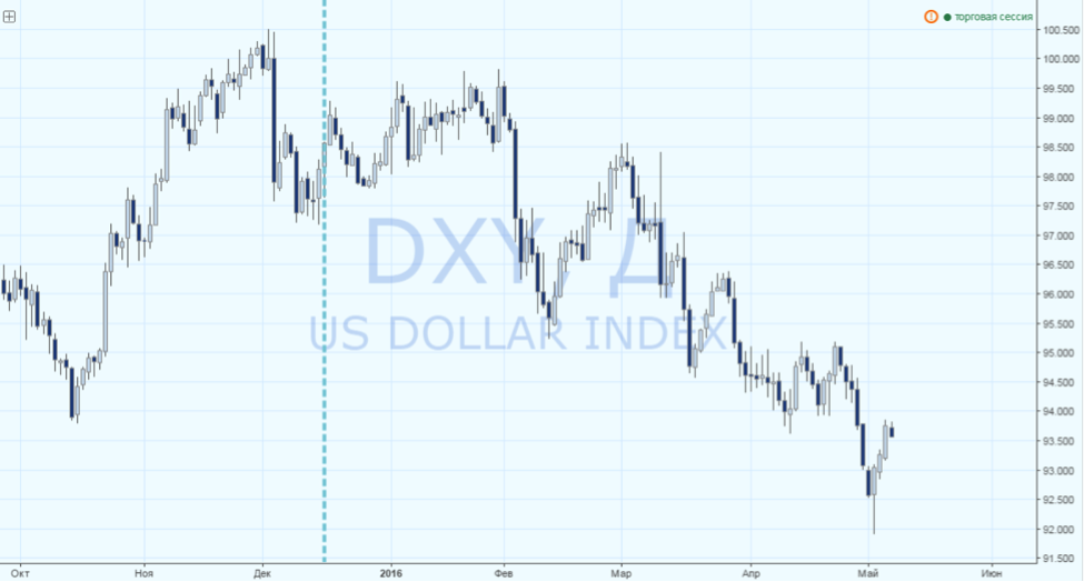Рис.1. Динамика индекса американского доллара (USDX) после повышения процентной ставки ФРС.